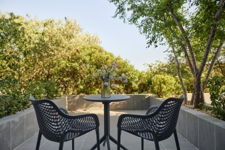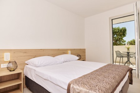 Doppelzimmer mit Terrasse: ca. 20 m², mit möblierter Terrasse, auch mit Meerblick buchbar.