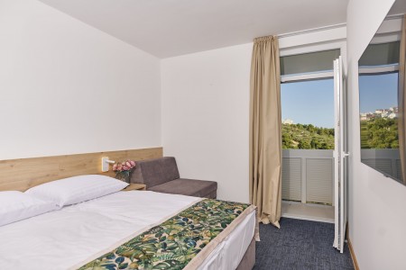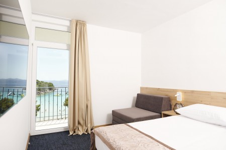Doppelzimmer mit Balkon: ca. 20 m², mit Schlafsofa (90x200 cm), möblierter Balkon, wahlweise auch mit Meerblick buchbar.