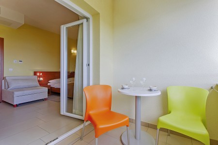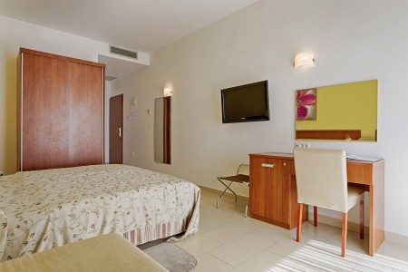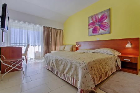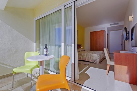 28 Zimmer: gemütlich eingerichtet mit Klimaanlage, Mini-Kühlschrank, SAT-TV, WiFi-Internet (kostenlos), Bad oder Dusche/WC und Balkon mit direktem Meerblick oder seitlichem Meerblick. Babybett auf Anfrage kostenlos möglich.