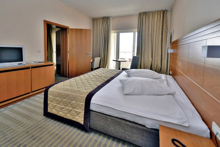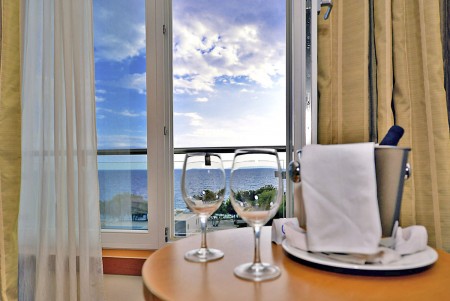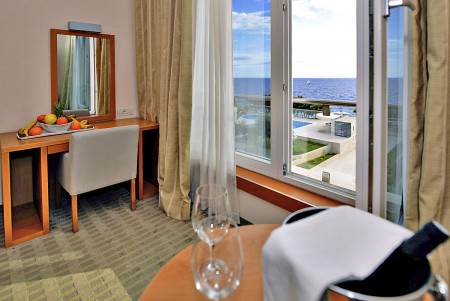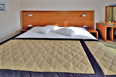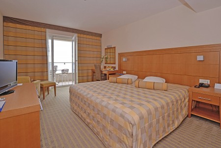 96 Zimmer: ca. 32-34 m², komfortabel eingerichtet mit Klimaanlage, Minibar, Safe, Telefon, WiFi-Internet (kostenlos), SAT-TV, Bad/WC. Wahlweise auch buchbar zur Meerseite, mit Balkon zur Parkseite oder mit Balkon zur Meerseite. Babybett auf Anfrage (kostenlos) möglich.