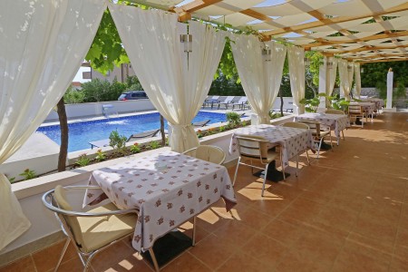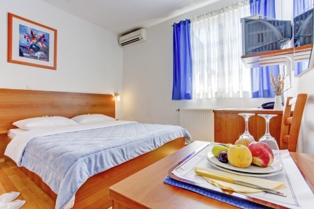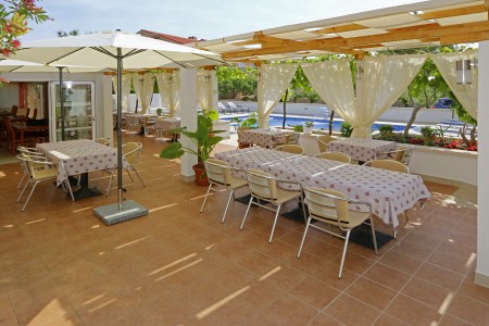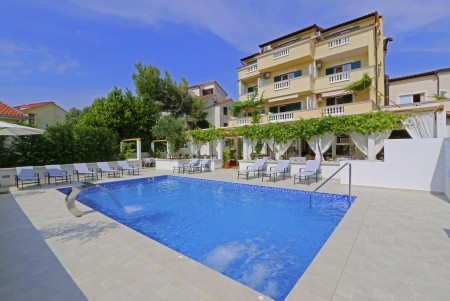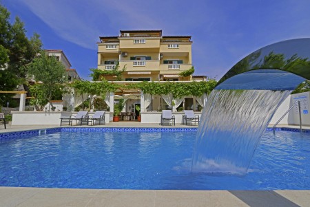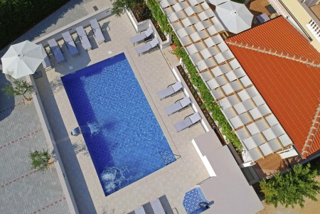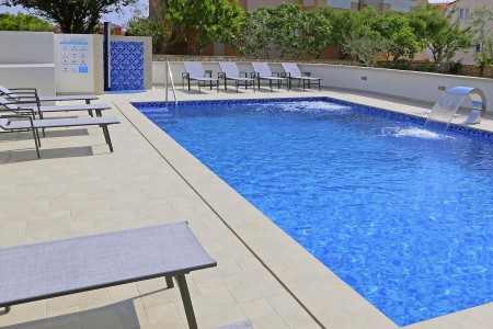 Die Pension befindet sich im beliebten Urlaubsort Novalja auf der Insel Pag und bietet Unterkunft in 12 modernen und komfortabel eingerichteten Zimmern. Zum nächsten Kiesstrand sind es nur etwa 500 m. Der berühmte Partystrand Zrće, auch bekannt als „Kroatisches Ibiza“, ist 3,5 km entfernt. Hier geht in fünf Clubs von Mitte Juni bis Anfang September rund um die Uhr „die Post ab“, oft sind europäische Spitzen-DJs zu Gast. Eine Wakeboard-Anlage rundet das Angebot ab. In der Vor- und Nachsaison ist es in Novalja angenehm ruhig, so dass auch Familien mit kleinen Kindern sowie Erholungssuchende eine unbeschwerte Zeit am Meer genießen können. Nur 2 Kilometer von der Pension entfernt befinden sich zahlreiche sandige Strände und Badebuchten mit glasklarem Wasser. Die Pension bietet auch einen Swimmingpool (9 x 5 m) mit Sonnenterrasse, der den Gästen des Hauses zur gemeinschaftlichen Nutzung zur Verfügung steht.