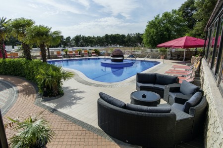 Einrichtungen: 24h-Rezeption, Hotelrestaurant mit Terrasse, Zimmerservice, Süßwasser-Swimmingpool mit Poolbar und Sonnenterrasse, Liegestühlen und Sonnenschirmen (kostenlos, begrenzte Anzahl). Parkmöglichkeit in der Garage mit Videoüberwachung (gegen Gebühr, ca. 15 € pro Tag) oder vor dem Hotel (gegen Gebühr, 9 € pro Tag). WiFi-Internet im gesamten Hotel verfügbar (kostenlos).