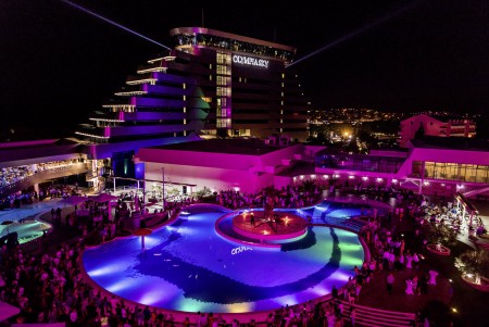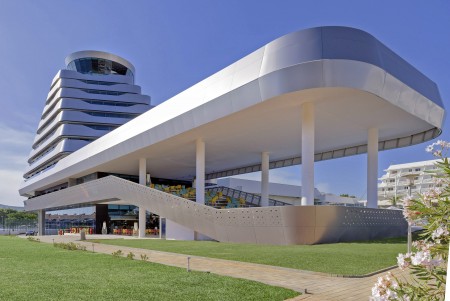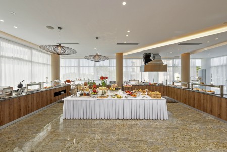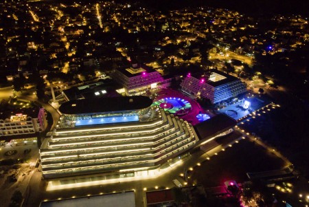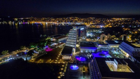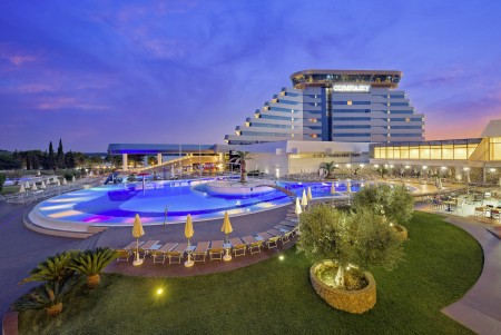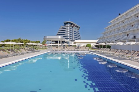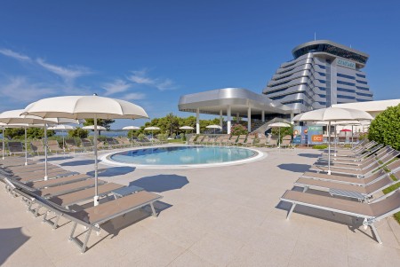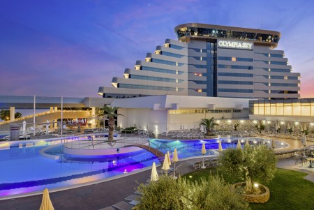 Einrichtungen: elegante Lobby, Aperitifbar, Innenpool, Swimmingpool in der 9. Etage nur für Gäste des Olympia Sky, à la carte Restaurant mit einmaligem Panoramablick in der 10. Etage. Weitere gemeinsame Einrichtungen im Hotelkomplex – Restaurant, zwei à la carte Restaurants, Business-Center mit mehreren Kongressräumen, Zeitungs- und Souvenirladen, Freiluftbühne, Süßwasser-Swimmingpool mit Schwallduschen und separatem Kinderbecken, Sonnenterrasse mit Liegestühlen und Sonnenschirmen (kostenlos, begrenzte Anzahl), Poolbar, Nutzung der Poolhandtücher für Gäste kostenlos. In der Hochsaison (15.06.-15.09.) 6x wöchentlich Animationsprogramm für Kinder und Erwachsene. Bewachter Parkplatz vor dem Hotel (12 € pro Tag), gebührenpflichtige Hotelgarage (20 € pro Tag). WiFi-Internet im gesamten Hotel verfügbar (kostenlos).