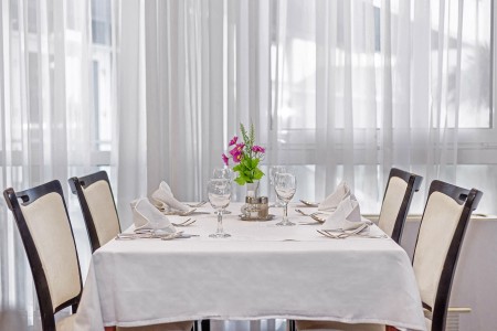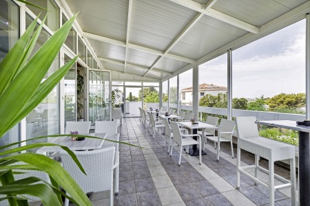 Einrichtungen: Restaurant, Aperitifbar, Kongressraum, Massage, Süßwasser-Swimmingpool mit Sonnenterrasse, Liegestühlen und Sonnenschirmen (kostenlos, begrenzte Anzahl), von Mitte Juni bis Mitte September Animationsprogramm für Kinder. WiFi-Internet in der gesamten Hotelanlage verfügbar (kostenlos). Parkplatz vor dem Hotel (01.06.-30.09. gegen Gebühr, 10 € pro Tag, sonst kostenlos).