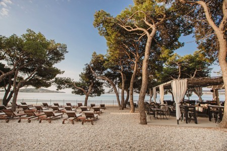 Strand: Zum flach abfallenden Kiesstrand mit Liegestuhl- und Sonnenschirmverleih sind es je nach Unterbringung etwa 30-100 m.