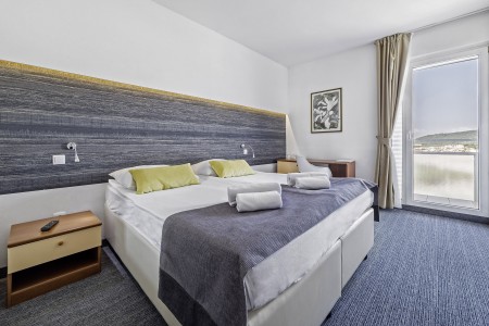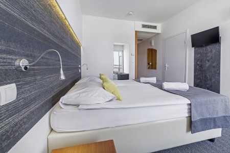 129 Zimmer im Haupthaus: ca. 18-21 m², komfortabel eingerichtet, mit SAT-TV, Klimaanlage, Telefon, WiFi-Internet (kostenlos), Minibar, Safe, Dusche/WC und Balkon. Wahlweise auch buchbar zur Meerseite oder mit Meerblick. Babybett auf Anfrage kostenlos möglich.