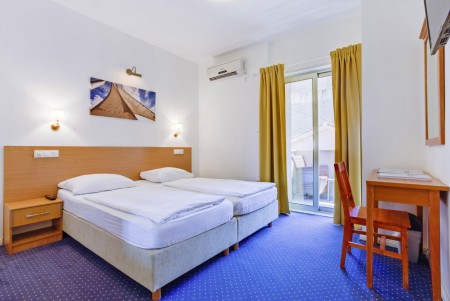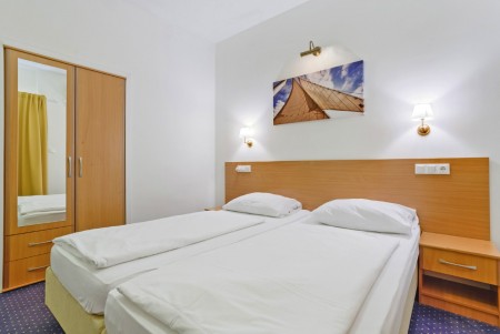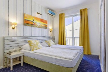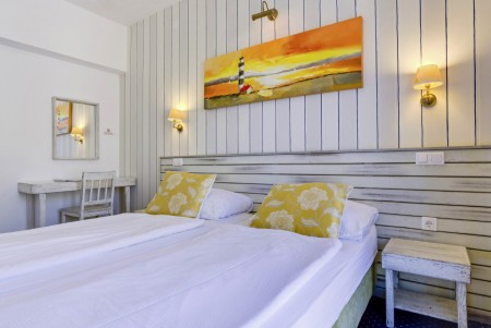 Standard Familienzimmer: ca. 18-20 m², Doppelbett oder zwei Einzelbetten und zusätzliches Etagenbett oder Schlafcouch für zwei Personen, Mini-Kühlschrank, Balkon.