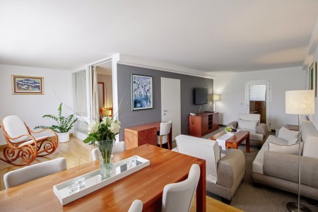 Suite Superior: ca. 60 m², ein Schlafzimmer mit Doppelbett und Einzelbett, geräumiges Wohnzimmer, Minibar, geschlossene Loggia, zur Seeseite gelegen.