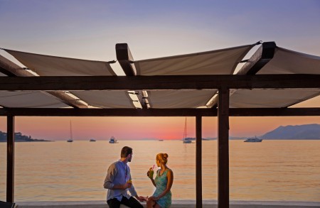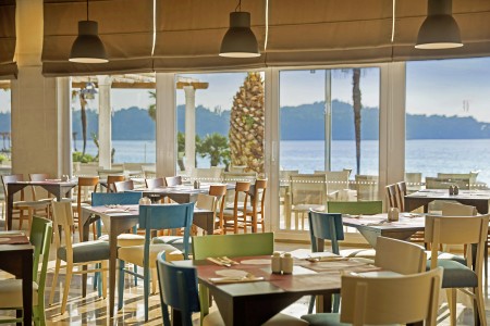 Strand: Der Kiesstrand liegt direkt vor dem Hotel. Strandrestaurant und Bar (witterungsabhängig geöffnet), Sonnenschirme und Liegestühle (inklusive, begrenzte Anzahl).