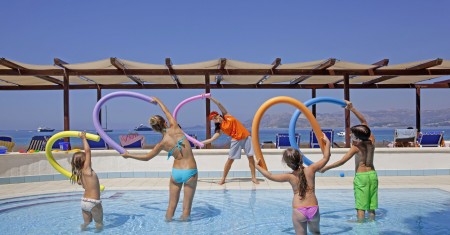 Einrichtungen: Restaurant, Aperitifbar, Souvernirshop, Swimmingpool mit separatem Kinderpool, Poolbar, Sonnenschirmen und Liegestühlen (inklusive, begrenzte Anzahl). Kinderspielplatz, Mini Club (4-7 Jahre), Maxi Club (8-12 Jahre), Teens Club (13-17 Jahre) und ganztägige Animationsprogramme. Gebührenpflichtiger Parkplatz vor dem Hotel (ca. 20 Plätze) und 200 m vom Hotel entfernt (ca. 150 Plätze). WiFi-Internet im gesamten Hotel verfügbar (kostenlos).