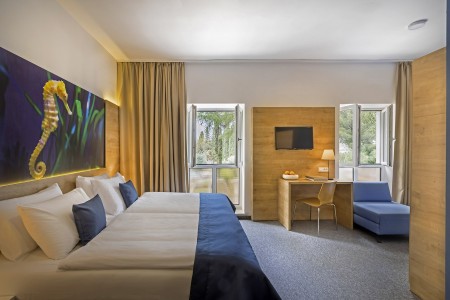 Verpflegung: Halbpension mit Frühstücks- und Abendbuffet. Vollpension „all inclusive“ mit Frühstücks-, Mittags- und Abendbuffet gegen Aufpreis buchbar. 1x wöchentlich Dalmatinischer Abend mit Musik und Folklore.