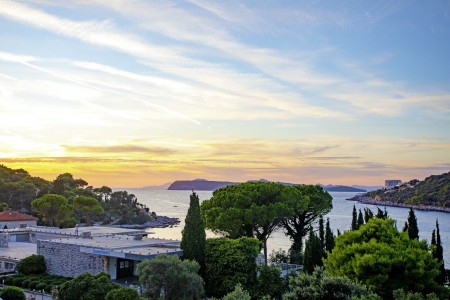 Das Hotel liegt in der Uvala Lapad (Lapad-Bucht), Linienbus-Verbindung zur Altstadt.