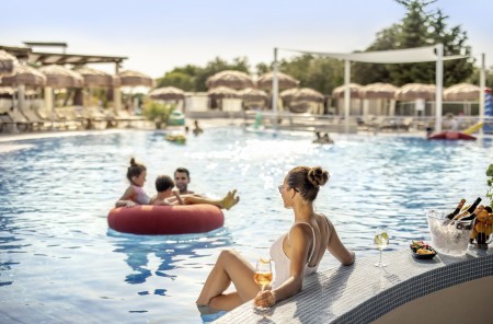 Einrichtungen: Buffet-Restaurant Mediterraneo mit Premium Show-Cooking, á-la-carte Restaurant Oliva Grill am Pool, Vero Bar in der Lobby mit Außenterrasse und kleinen Snacks, Süßwasser-Swimmingpool (400 m²) mit Rutschen und separatem Babypool (26 m²), Sonnenschirme und Liegestühle (kostenlos, begrenzte Anzahl), Splash Pool Bar mit Swim-up Bereich. Stay Fit Sportanimation tagsüber mit verschiedenen Aktivitäten wie z.B. Aqua Aerobic Joffen, Active Wake-up, Yoga und Full Body Workout. Maro World für Kinder auf 1800 m² mit Maro Club mit speziell gestalteten Kinderspielzimmern für Kinder von 3-12 Jahren, Maro Softplay Zone mit Spielelementen aus Schaumstoff und Kinder-Pracours, Game Lounge mit Spielekonsolen, Old Skool Game Lounge mit Tischtennis, Tischfußball, Billard und Gesellschaftsspielen, Outdoor-Trampolin und Adrenalin-Zone auf 270 m² für Kinder jeden Alters, Maro Theater für Veranstaltungen am Abend, Kinderspielplatz, Kinderanimation für verschiedene Altersgruppen (15.06.-01.09.) im Maro Club mit Mini Maro (3-6 Jahre), Maxi Maro (7-12 Jahre) und Teens Lounge (13-17 Jahre). WiFi-Internet im gesamten Hotel verfügbar (kostenlos). Kostenpflichtiger Parkplatz am Hotel (8 € pro Tag).