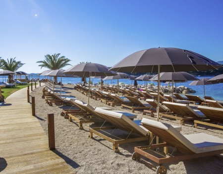 Strand: Zu den gepflegten Kiesstränden mit Liegeflächen, Sonnenschirm- und Liegestuhlverleih sowie Duschen und Beachbar sind es ca. 250 m.