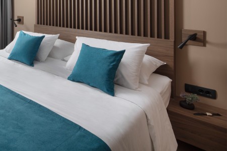 49 Zimmer: mit Klimaanlage, LED SAT-TV, Safe, Minibar (gegen Gebühr), Kaffee- und Teekocher, Föhn, WiFi-Internet (kostenlos) und Badezimmer mit Walk-in Dusche/WC. Babybett auf Anfrage (kostenlos) möglich.