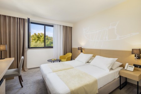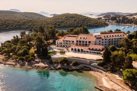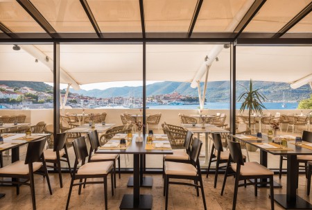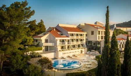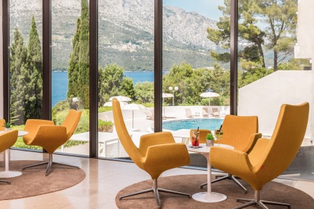 Das Hotel liegt direkt am Meer mit malerischem Ausblick auf Korčula und ist von duftender mediterraner Vegetation umgeben. Die Altstadt ist nur 10 Gehminuten vom Hotel entfernt.