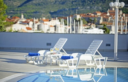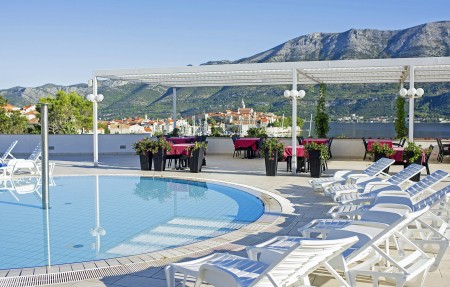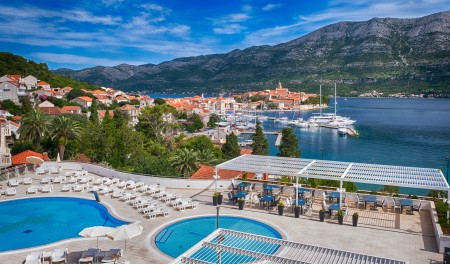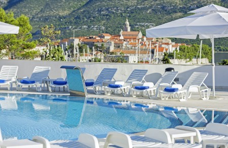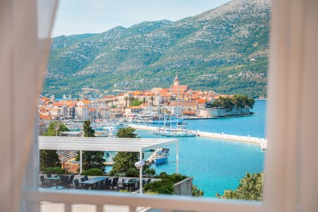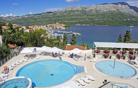 In Hanglage direkt am Meer, liegt das Hotel nur 10 Gehminuten von der einmaligen Altstadt von Korčula entfernt.