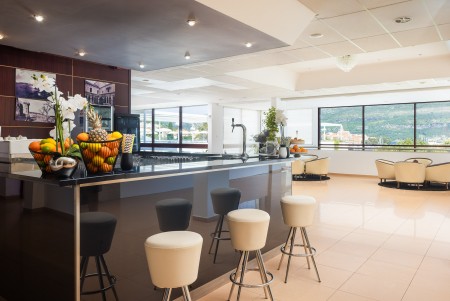 Einrichtungen: Buffet-Restaurant, Lobbybar, Geldautomat. Süßwasser-Hallenbad (Ende Juni bis Anfang September geschlossen), Süßwasser-Swimmingpool mit separatem Kinderbecken und Poolbar, Kinderspielplatz in der Nähe. Kleiner Parkplatz am Hotel (gegen Gebühr, ca. 5 € pro Tag), Abstellraum für Fahrräder. WiFi-Internet im gesamten Hotel verfügbar (kostenlos).