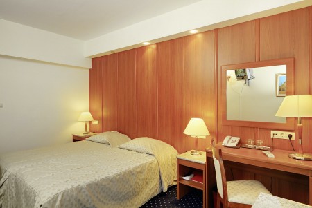Standard Zimmer: ca. 16-20 m², mit Doppelbett. Wahlweise buchbar zur Parkseite oder zur Meerseite.