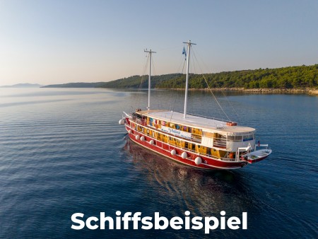 Die Schiffe sind Motorsegler und -yachten. Sie bieten Platz für 20 bis 40 Personen und unterscheiden sich auch hinsichtlich ihrer Ausstattung. Zudem verfügen sie neben den entsprechenden Kabinen mit Dusche/WC und Klimaanlage auch über einen Salon und ein Sonnendeck. An Bord des Schiffes herrscht eine unbeschwerte, gesellige Atmosphäre ohne steife Sitz- und Kleiderordnung. Lassen sie sich von Kroatiens Hafenstädtchen bezaubern, radeln Sie über grüne Inseln und baden Sie in den schönsten und einsamsten Buchten des Mittelmeeres!