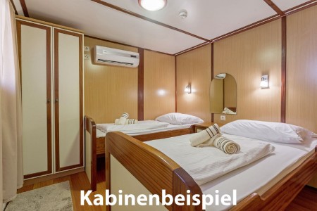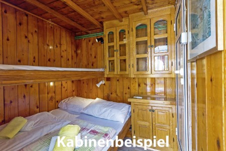 * Doppelkabinen zur Alleinbenutzung sind ebenfalls buchbar. Der Zuschlag für eine Doppelkabine zur Alleinbenutzung beträgt 50%.