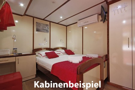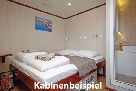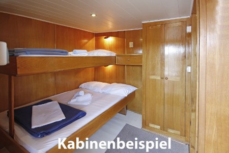 * Doppelkabinen zur Alleinbenutzung sind ebenfalls buchbar. Der Zuschlag für eine Doppelkabine zur Alleinbenutzung beträgt 50%