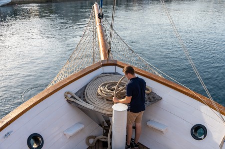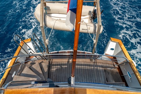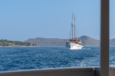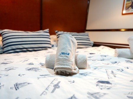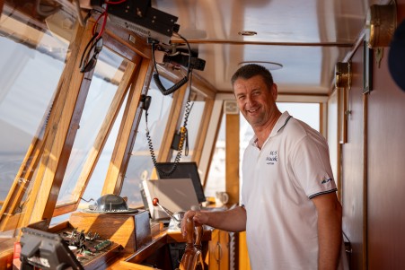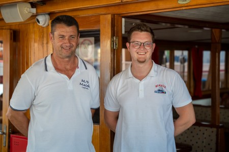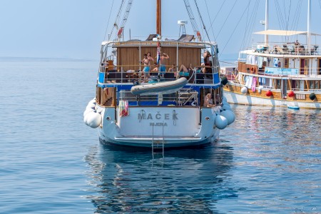 Erst im Jahre 2004 erbaut, zählt die Maček nicht nur zu den komfortabelsten Schiffen unserer Flotte, sondern sie ist auch eine gelungene Symbiose aus Stahl und Holz. Denn obwohl der Rumpf aus Stahl ist, sind die Aufbauten fast vollständig aus Holz, womit Flair und Gemütlichkeit eines traditionellen Holzschiffes erhalten wurden. Dreizehn Jahre lang war die Maček wohlbehütet in den Händen von Kapitän Teo Vuković aus Krilo Jesenice. Im Sommer 2016 hat sich Teo entschlossen, das Schiff zu verkaufen – und zwar an niemand geringeren als Kapitän Kristijan Gulić von der Poseidon. Es war uns nicht nur wichtig, dass die Maček Mitglied unserer Flotte bleibt, sondern auch in die richtigen Hände gelangt. Und wer könnte dafür besser geeignet sein als Kristijan, der mit der Poseidon bewiesen hat, wie man ein Schiff liebevoll pflegt. Der neue Heimathafen der Maček wurde somit Supetarska Draga auf der Insel Rab, und sie fährt ab Rijeka auf unseren Routen durch die Nord-Adria. In den vergangenen Sommern hat Kristijan bewiesen, dass er und die Maček ideal zusammenpassen, was viele unserer Gäste bestätigt haben.