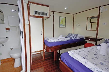 Hauptdeck: 1 Doppelkabine mit Einzelbetten, 2 Doppelkabinen mit französischem Bett.