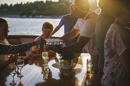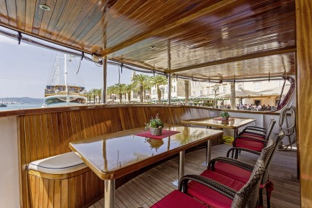 Seit ihrem Stapellauf im Jahre 2011 ist die MS Amore nicht nur fester Bestandteil der Riva-Flotte, sondern gleichzeitig auch eines unserer beliebtesten Schiffe mit einem hohen Anteil an Stammgästen. Um das Kreuzfahrterlebnis noch komfortabler zu machen, hat sich die Eignerfamilie entschlossen, zur Saison 2024 alle Decks mit neuen Böden aus edlem Teakholz zu versehen. Außerdem wird das Sonnendeck verlängert und erhält einen Whirlpool. Dadurch entsteht auf dem darunterliegenden Oberdeck ein neuer Loungebereich, der witterungsbedingt mit Sonnenschutz oder Planen verschlossen werden kann. Darüber hinaus erhalten alle Kabinen Haartrockner. Gastgeber und Kapitän ist schon seit Jahren Mario Jurešić, der sich mit seiner Crew um die Wünsche der Gäste kümmert.