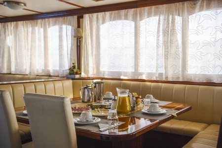 Allgemeine Daten: Länge 40 m, Baujahr 2011. 40 Betten in 19 Kabinen mit individuell regulierbarer Klimaanlage, Dusche/WC und Haartrockner.