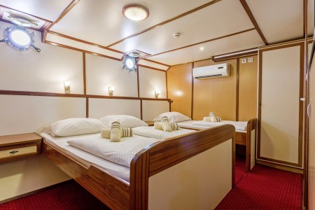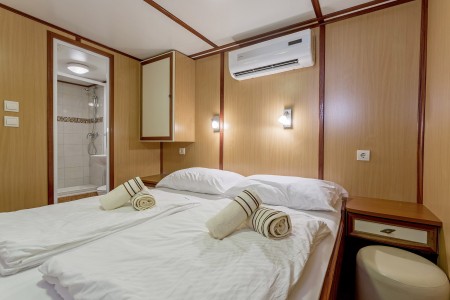 Hauptdeck: 4 Doppelkabinen mit Einzelbetten, 1 Doppelkabine mit französischem Bett.