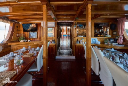 Allgemeine Daten: Länge 25 m, Baujahr 1988, rekonstruiert 2016. 24 Betten in 11 Kabinen mit Dusche/WC und individuell regulierbarer Klimaanlage.