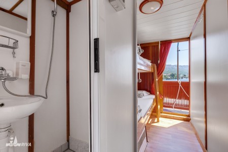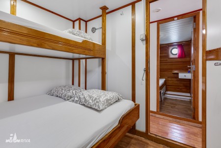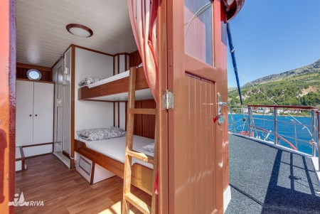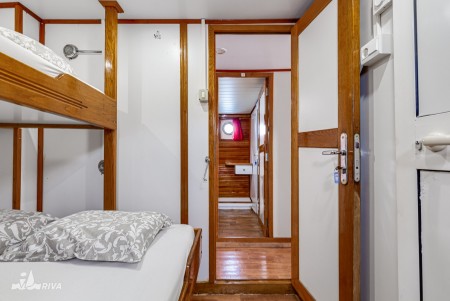 Oberdeck: 5 Doppelkabinen mit Etagenbetten.