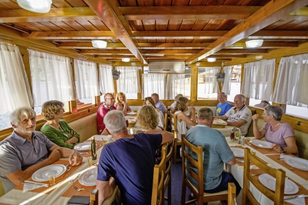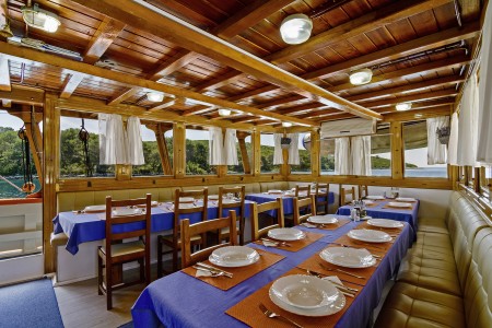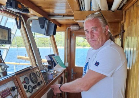 Die MS Dalmatino ist ein weiteres schönes Beispiel dafür, wie familiär es an Bord der Schiffe von I.D. Riva Tours zugeht. 15 Jahre lang fuhr die Familie Škarica mit der Dalmatino durch die Inselwelt Nord-Dalmatiens. Seit diesem Jahr ist Ivan Ramić aus der Region Metković neuer Eigner des Schiffes - er genießt das volle Vertrauen der bisherigen Besitzerfamilie. Die Kapitänsmütze hat Mario Čopac, genannt Gof, übernommen. Er ist ein erfahrener Seemann, der die Dalmatino weiterhin ab Zadar durch die blaue Adria steuern wird. Gemeinsam mit seiner Crew bereitet er seinen Gästen einen entspannten Urlaub auf dem Meer.