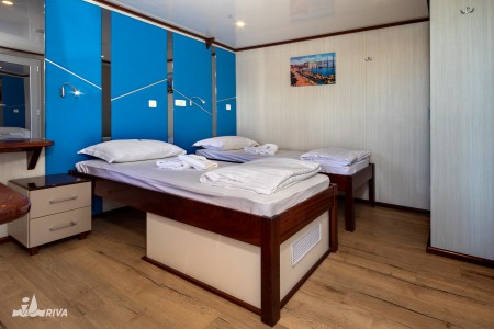 Oberdeck: 4 Doppelkabinen mit Einzelbetten, die zum Doppelbett zusammengestellt werden können*.