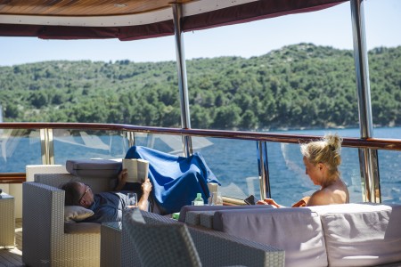 Die Geschichte der Brüder Arsen und Ante Ercegović ist eine Erfolgsgeschichte. Während Vater Tomislav schon früh zusammen mit seinem älteren Sohn Arsen Urlaubern auf der MS Orkan die Schönheiten der dalmatinischen Inselwelt zeigte, transportierte sein jüngerer Sohn Ante mit einem kleinen Frachtschiff Baumaterial vom Festland zu den Inseln. Erst 2003 wendete sich auch Ante dem Tourismus zu, und heute blickt er stolz auf sein komfortables Schiff, die MS Amore. Im Jahre 2009 lief auch Arsens neues Schiff, die MS Columbo, vom Stapel. Nach nur fünf Jahren entschied sich Arsen, ein zweites Schiff zu bauen – die MY Mystic. 17 komfortable Kabinen, ein großzügiger Salon mit Bar und Sitzecke auf dem Oberdeck, gemütliche, überdachte Sitzgruppen hinter dem Salon und ganz oben ein riesiges Sonnendeck. Zur Saison 2018 bekam die Mystic ein neues Schwesterschiff – die „MY Relax“ – und die Columbo wurde zum Herbst 2017 verkauft. Die Relax sollte jedoch nicht der letzte Neubau der Familie Ercegović sein, denn schon im Juni 2019 erhielt sie ein baugleiches Schwesterschiff – die „MY Azzurro“. Arsen und sein jüngster Sohn Roko sind der Mystic treu geblieben, während seine beiden älteren Söhne Karlo und Paško am Ruder der beiden neuen Schiffe stehen.