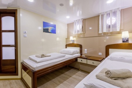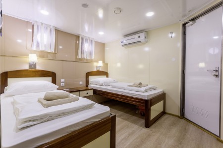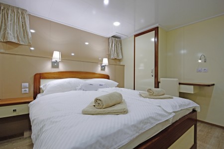 Hauptdeck: 7 Doppelkabinen mit Einzelbetten, 2 Doppelkabinen mit französischem Bett.
