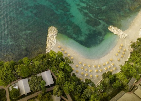 Strand: Zum Fels- und Kiesstrand mit Liegeflächen und Liegewiesen, Duschen und Umkleidekabinen, sind es je nach Unterbringung ca. 50-150 m. Der Strand ist mit der „Blauen Flagge“ ausgezeichnet, welche für ein sauberes, gepflegtes Küstengebiet mit hervorragender Wasserqualität steht.