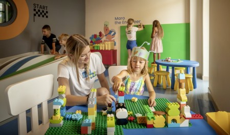 Einrichtungen: Rezeption, Geldautomat, mehrere Restaurants & Bars, Lebensmittelgeschäft, verschiedene Souvenir- und Marktstände mit Obst, Gemüse und frischen regionalen Spezialitäten sowie Brot- und Backwaren, Wäscherei (gegen Gebühr). Maro Club für Kinder verschiedener Altersklassen – Mini (3-7 Jahre), Maxi (7-12 Jahre) und Baby Club (0-3 Jahre), sowie Teens Lounge (ab 12 Jahre) mit abwechslungsreichem Animationsprogramm für Kinder und Erwachsene (saisonabhängig), Aquamar-Premium-Wasserpark mit mehreren beheizten Meerwasserpools und Kinderbecken sowie Wasserrutschen, Liegestuhl- und Sonnenschirmverleih, Marina mit Bootsliegeplätzen (gegen Gebühr). WiFi-Internet (kostenlos) in der gesamten Anlage. Pro Mobilheim ist ein PKW-Parkplatz im Preis enthalten.