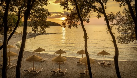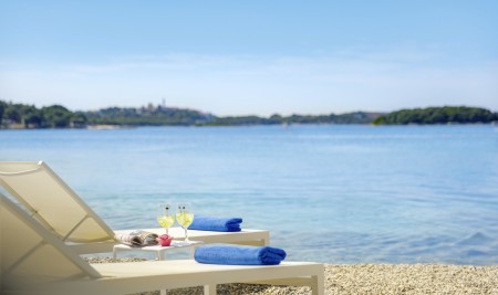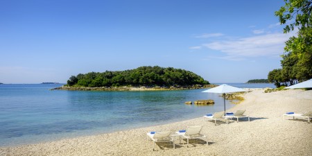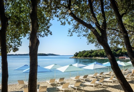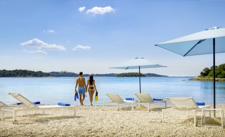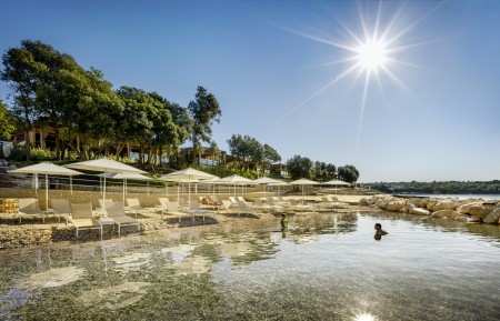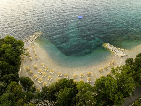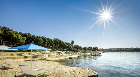 Strand: Zum Fels- und Kiesstrand mit Liegeflächen und Liegewiesen, Duschen und Umkleidekabinen, sind es je nach Unterbringung ca. 30-100 m. Der Strand ist mit der „Blauen Flagge“ ausgezeichnet, welche für ein sauberes, gepflegtes Küstengebiet mit hervorragender Wasserqualität steht.