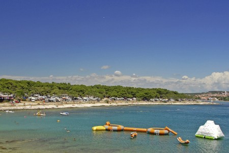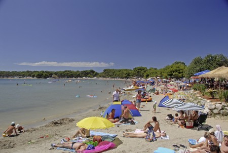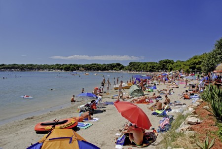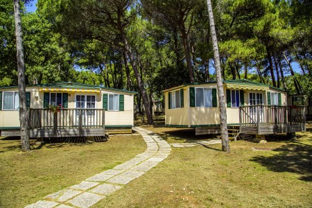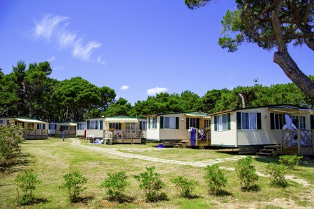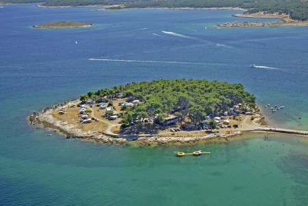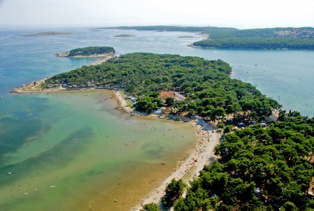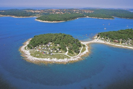 Auf zwei Halbinseln, nur durch einen schmalen Damm miteinander verbunden, liegt der Campingplatz mit 121 Mobilheimen in einem 30 ha großen Pinienwald, nur 400 m vom Ortszentrum entfernt. Von Medulin gibt es eine Linienbus-Verbindung nach Pula.
