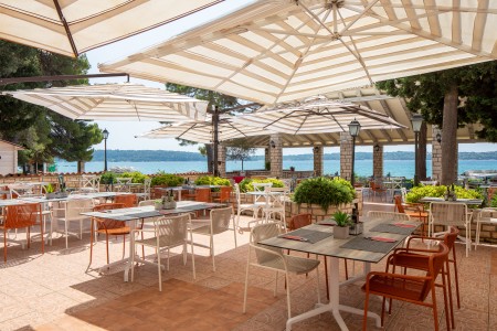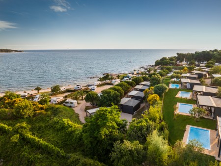 Strand: Der Felsstrand mit Liegeflächen und Liegewiesen ist etwa 200 m von den Mobilheimen entfernt. Der Strand ist mit der „Blauen Flagge“ ausgezeichnet, welche für ein sauberes, gepflegtes Küstengebiet mit hervorragender Wasserqualität steht. Am Strandabschnitt vor dem benachbarten Hotel Maestral gibt es die „Punto Mare Fun & Beach Zone". Es erwartet Sie eine große Sonnenterrasse mit Liegestühlen und Sonnenschirmen (gegen Gebühr), zwei Meerwasser-Swimmingpools direkt am Meer, Unterhaltungsprogramm mit Animation für alle Altersgruppen (montags, mittwochs und donnerstags), Cocktails, Snacks/Pizza, Eis, Kinderzone, DJ-Musik/Live-Musik in den Abendstunden und verschiedene Themenabende (saisonabhängig).