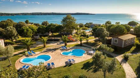 Der Campingplatz liegt neben dem Hotel Laguna direkt am Meer, eingebettet in herrliche mediterrane Landschaft. Eine Besonderheit der Anlage sind die beiden autofreien Bereiche des Campingplatzes. Im Bereich „Sirena Village“ werden moderne Mobilheime des Typs „Sirena Premium“ angeboten. Der Bereich verfügt über vier gemeinsame Swimmingpools, die ausschließlich den Gästen der „Sirena Premium“-Mobilheime zur Verfügung stehen. Hierbei teilen sich jeweils acht Häuschen einen Swimmingpool, Liegestühle und Sonnenschirme stehen in begrenzter Anzahl kostenlos zur Verfügung. Außerdem gibt es einen Grillbereich. Die Mobilheime des Typs „Classic“ haben keinen Pool.