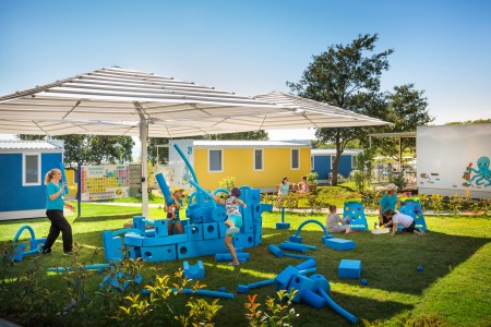 Einrichtungen: Supermarkt, Backwaren-Lieferservice, Obst- und Gemüsestände, Café, à la carte Restaurant im Hotel Maestral, Grillrestaurant am Strand. WiFi-Internet auf dem gesamten Campingplatz verfügbar (kostenlos). Saisonabhängig Tages- und Sportanimation mit verschiedenen Aktivitäten, außerdem Kinderspielplatz, Miniclub und Minidisco für Kinder und abwechslungsreiche Abendunterhaltung für Groß und Klein. Parkplätze stehen neben den autofreien Bereichen zur Verfügung.