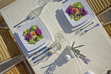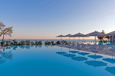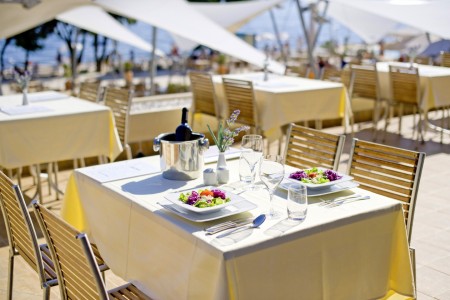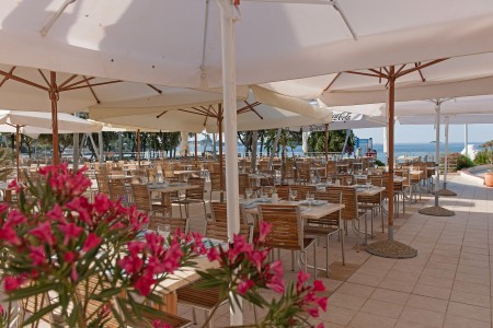 Strand: Zum 1 km langen, mit der Blauen Flagge ausgezeichneten Felsstrand mit Sonnenschirm- und Liegestuhlverleih (gegen Gebühr) sind es je nach Unterbringung etwa 100 bis 300 m.