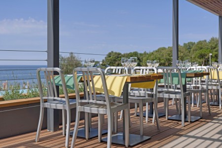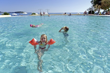 Einrichtungen: Restaurant, Pizzeria, Grill, Konditorei, Fast Food, Obst- und Gemüsestand, Fresh Corner mit Bäckerei, Aperitifbar, Poolbar, Souvenir- und Zeitschriftenladen, Supermarkt, Fernsehraum mit SAT-TV, Massage, Wäscherei, Geldautomat, Kinderspielplatz, drei Meerwasser-Swimmingpools (davon ein Kinderbecken), Liegestühle und Sonnenschirme (gegen Gebühr). In der Saison Unterhaltungsabende, Tanzmusik und Kinderprogramm auf den Terrassen, am Pool oder am Strand, tägliches Animationsprogramm für Kinder und Erwachsene, Teen Club (11-18 Jahre), Miniclub (4-12 Jahre) im Juli und August von 10-20 Uhr, in der übrigen Zeit je zwei Stunden vormittags und nachmittags. Unbewachter Parkplatz in der Ferienanlage. WiFi-Internet verfügbar (kostenlos). Im Juli und August Taxi-Boot und Busverbindung nach Rovinj (gegen Gebühr).
