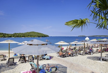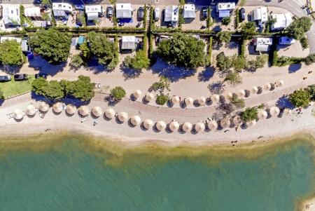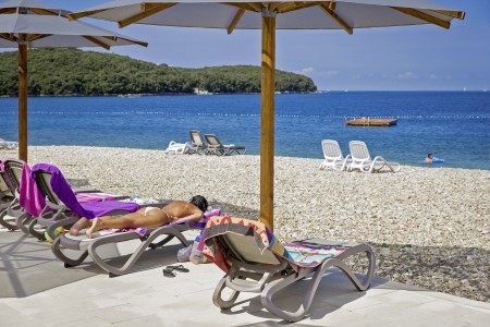 Strand: Zum 1 Kilometer langen Kiesstrand mit Duschen, kostenlosen Liegestühlen und Sonnenschirmen sind es je nach Unterbringung ca. 50 m.