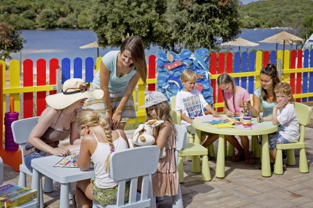 Einrichtungen: Rezeption, Geldautomat, Restaurant mit Terrasse und Ausblick auf das Meer, Cafébar, zwei beheizte Meerwasser-Swimmingpools, Spray Park, Beach-Bar, kleiner Hafen mit Slipanlage für Sportboote bis 5 m, Supermarkt mit frischen Lebensmitteln aus eigener Produktion und Backwaren, Stand mit Obst und Gemüse, Zeitschriften- und Souvenirshop, mehrere Kinderspielplätze, Tages- und Abendanimation für Kinder, Unterhaltungsprogramm für Erwachsene mit verschiedenen Sportprogrammen und Musikabenden. Internet-Corner an der Rezeption verfügbar (kostenlos), WiFi-Internet in der gesamten Anlage verfügbar (kostenlos). Mietsafes an der Rezeption erhältlich (gegen Gebühr). Ladestationen für Elektroautos (begrenzte Anzahl, gegen Gebühr). Kostenloser Parkplatz für 1 PKW am Mobilheim, für zusätzliche Fahrzeuge wird eine Gebühr von 3 € pro Tag berechnet.