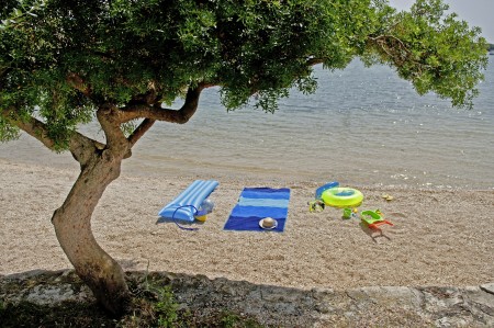 Strand: Zum Fels- und Kiesstrand mit sandigen Abschnitten und Hundestrand sind es je nach Unterbringung ca. 250 m. Liegestühle und Sonnenschirme gegen Gebühr. Der Strand ist mit der „Blauen Flagge" ausgezeichnet, welche für ein sauberes, gepflegtes Küstengebiet mit hervorragender Wasserqualität steht.