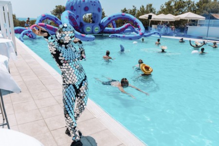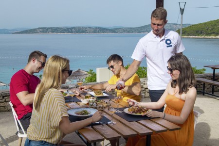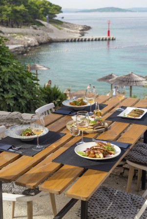 Einrichtungen: Hauptrestaurant "Kitchen" mit Terrasse am Pool, "Bok"-Strandrestaurant, Pizza-, Burger- und Green-Bar, Strandbar "Drift". Meerwasser-Swimmingpool mit Sonnenterrasse, Sonnenliegen (kostenfrei, begrenzte Anzahl) und Poolbar, kleiner Supermarkt, Geldautomat. Sport- und Kinderanimation, gelegentlich Livemusik und DJs. WiFi-Internet verfügbar (kostenlos). In der Sommersaison für Gäste kostenfreier Bootstransfer 3x täglich von Šibenik aus zwischen 10 und 17 Uhr. Öffentliche Parkplätze in Šibenik gegen Gebühr (ab ca. 3 € pro Tag).